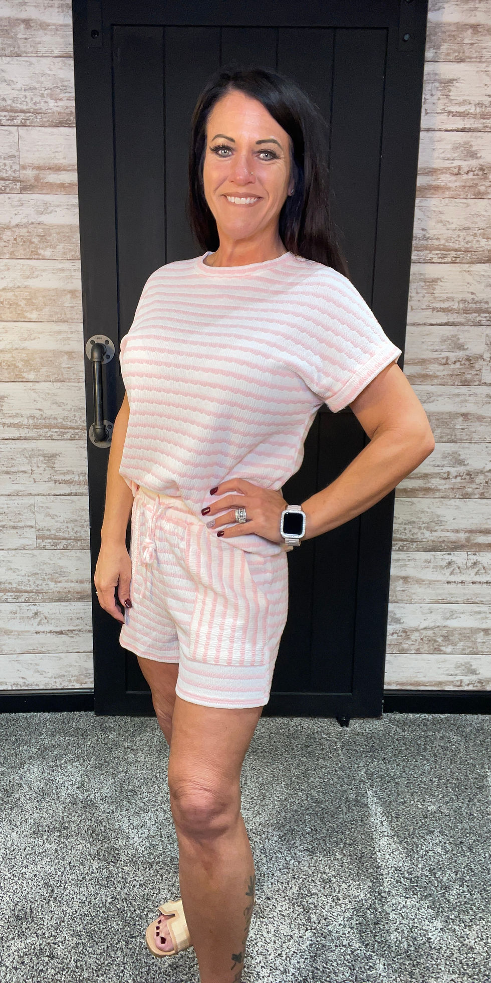 Pink Stripe Knitted Top and Short Set