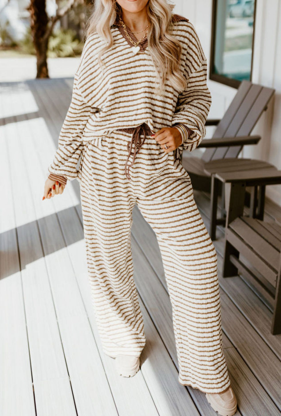 **Pre-Order** Preorder White and Brown Stripe Set
